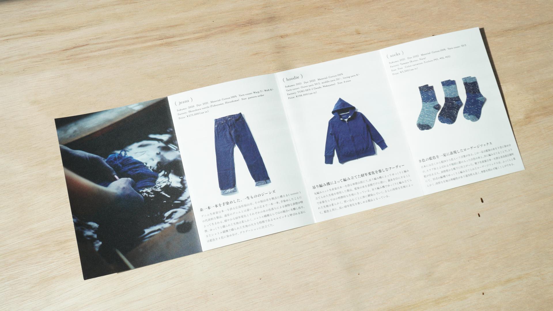 위 양말은 쪽염색의 실을 9색으로 나눠서 염색하고, 슬럽사(Slub絲)라고 하는 불규칙적인 마디가 들어간 하얀실과 함께 편직한 것으로
