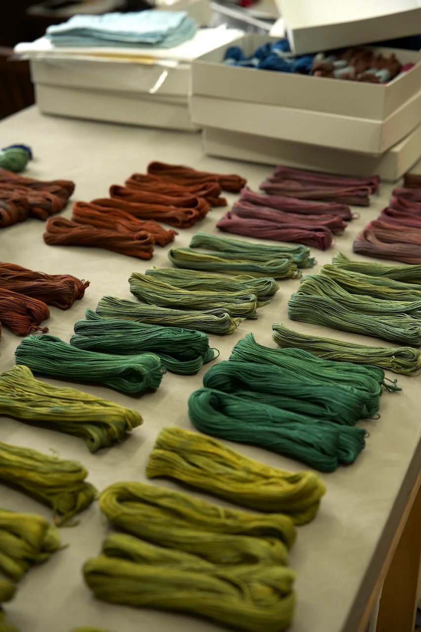 자수 시 입체감이 살아나도록 염색을 불균형하게 남겨(ムラを残す) 깊이 있는 표현이 가능합니다.