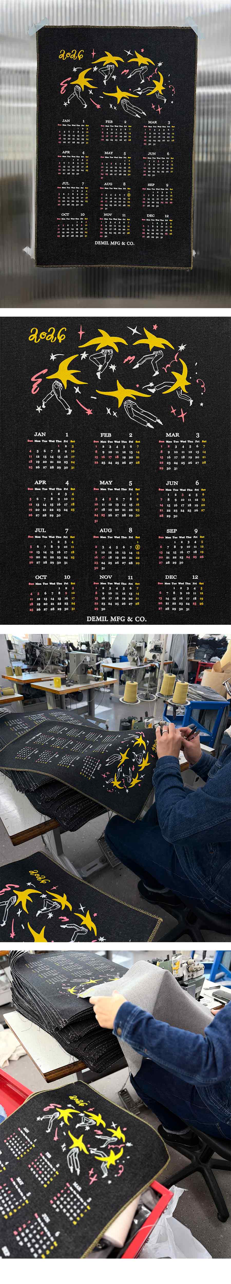 ** 이 달력은 데밀에서 직접 사용하는 데님 원단 위에 실크스크린 작업으로 제작되었습니다.